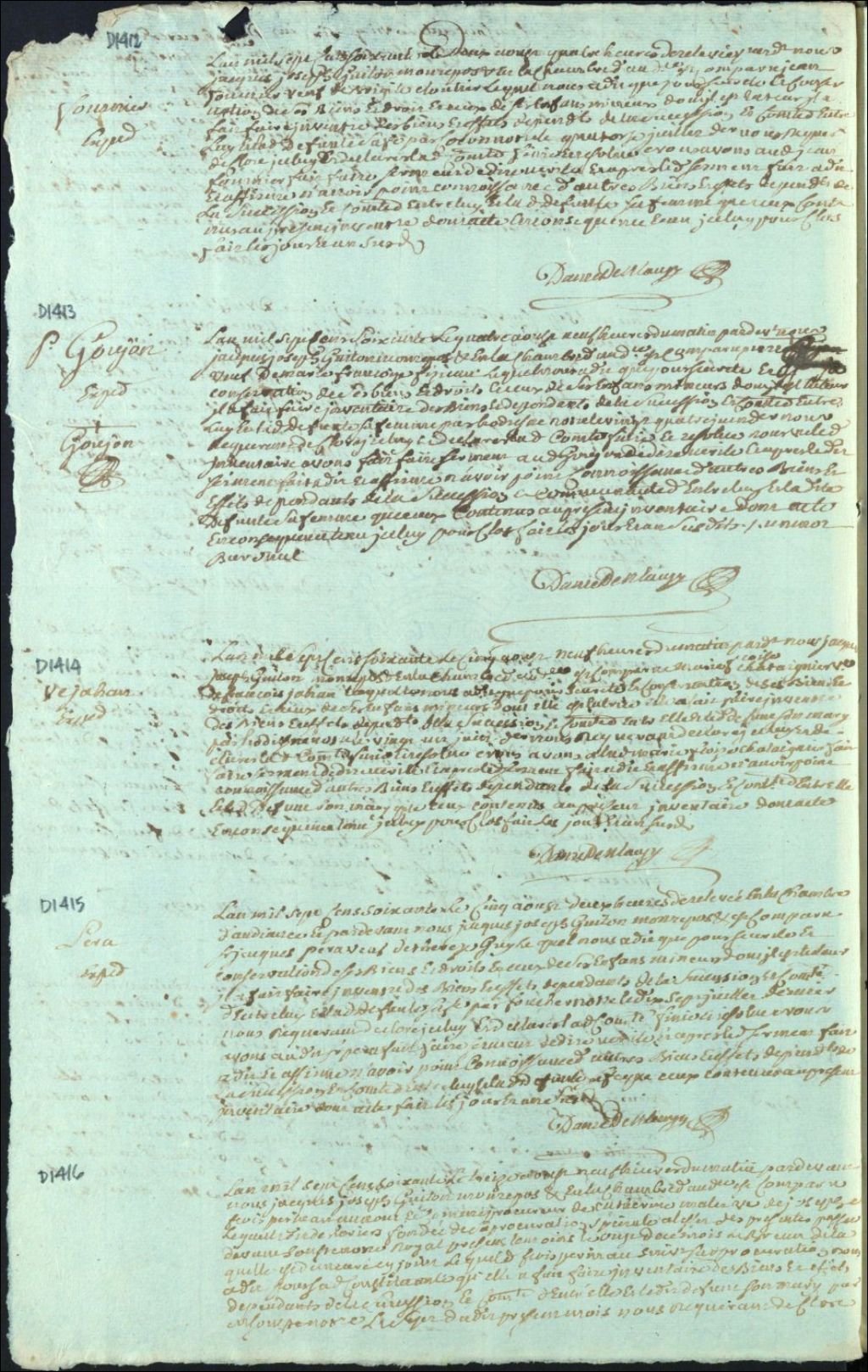 Clôture d'inventaire des biens de la succession et de la communauté de Jean Fournier et de défunte Brigitte Cloutier, 2 août 1760, Archives nationales à Montréal, Clôtures d'inventaires. District judiciaire de Montréal, (06M,CV601,S1,D1412).