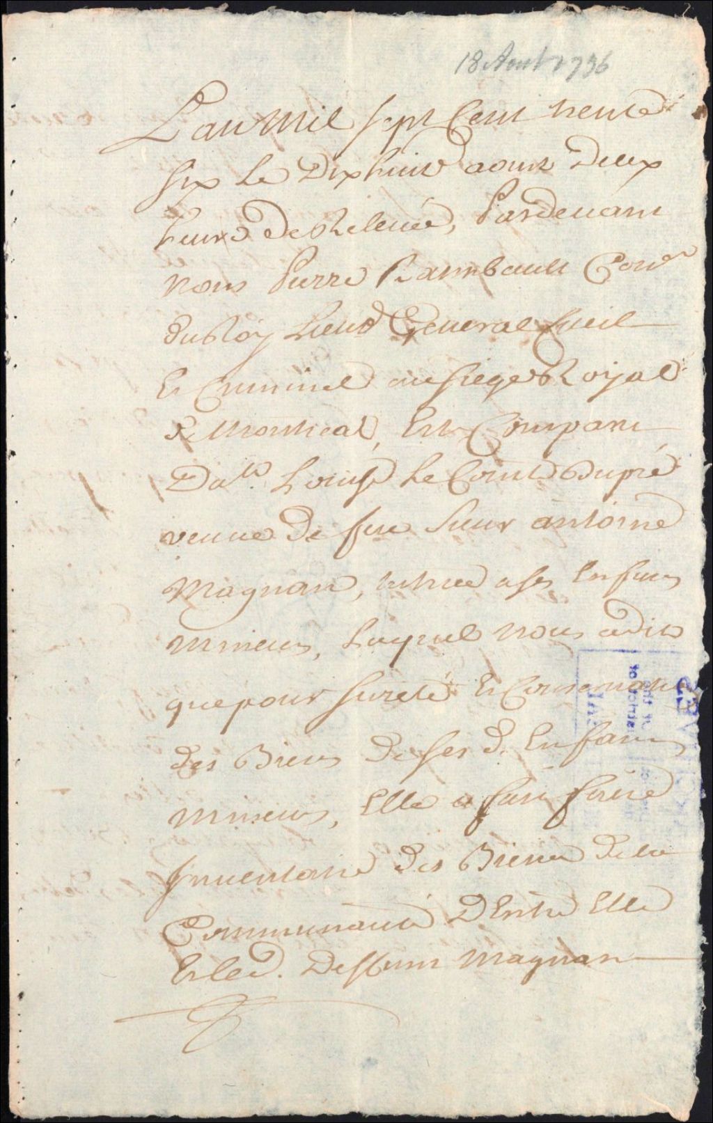 - Clôture d'inventaire des biens de la succession et de la communauté de Louise Lecomté Dupré et de défunt Antoine Magnan dit Lespérance