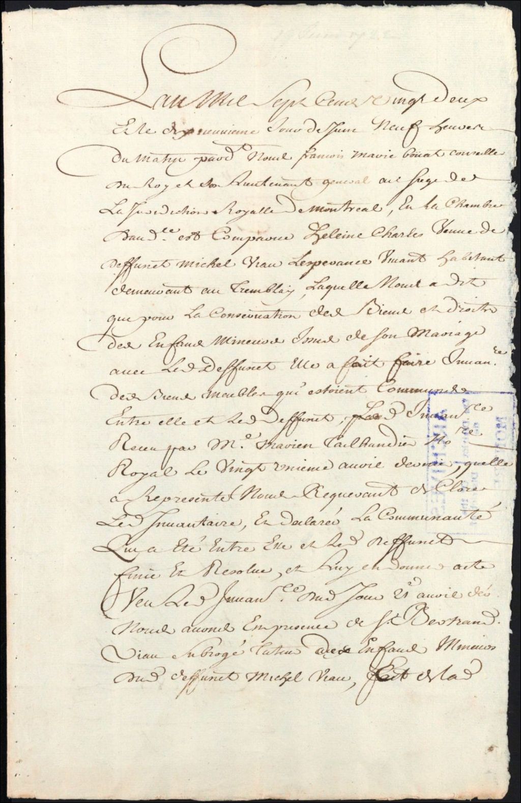 Clôture d'inventaire des biens de la succession et de la communauté de Hélène Charles et de défunt Michel Viau