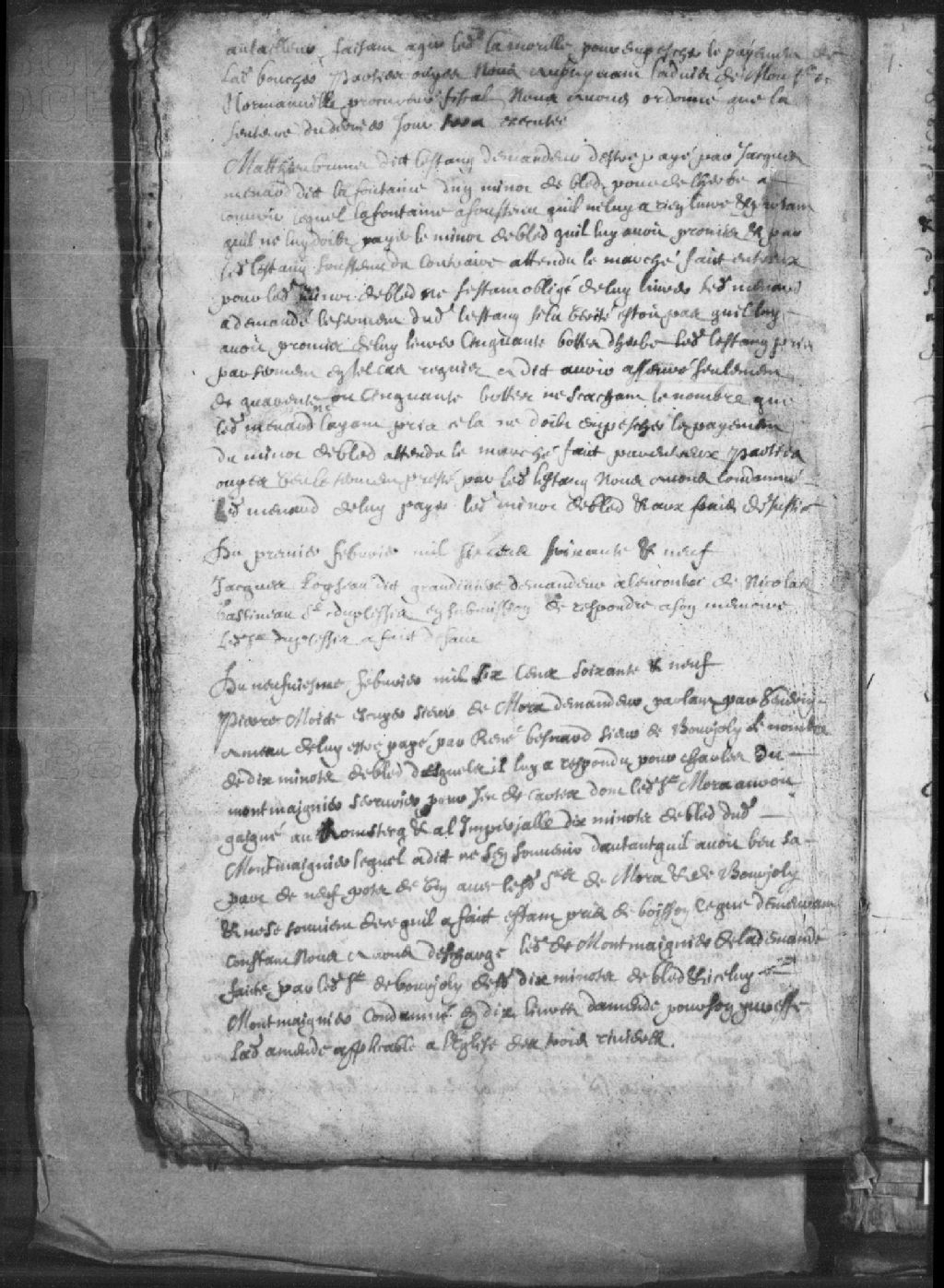 Requête de Mathieu Brunet dit Létang (Lestang), demandeur, de lui être payé par Jacques Ménard dit Lafontaine (La Fontaine), un minot de blé pour de l'herbe à couvrir. Ledit défendeur dit ne pas avoir promis un minot de blé audit demandeur qui soutient le contraire selon le marché qu'ils ont conclu ensemble. Il est ordonné que ledit Lafontaine (La Fontaine) paie le minot de blé audit Létang (Lestang) en plus des frais de justice