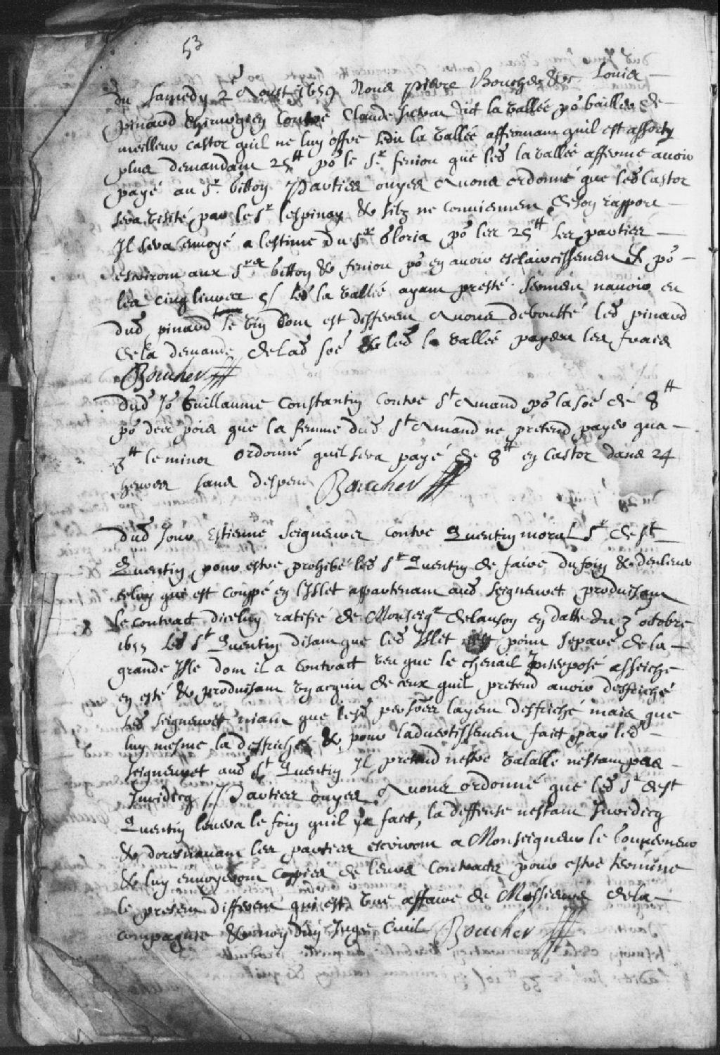 Requête de Guillaume Constantin contre Saint-Amand pour la somme de 8 livres pour des pois que la femme dudit Saint-Amand ne prétend payer qu'à 3 livres le minot. Ordonné qu'il soit payé de 8 livres en castor dans 24 heures sans dépens
