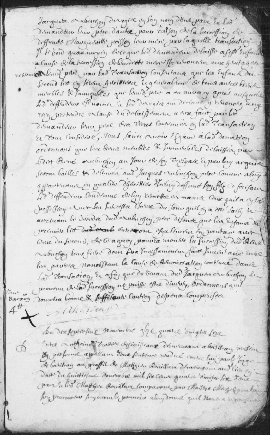 Appel d'une sentence rendue par le juge de Batiscan en date du 8 novembre 1686 concernant Antoine Trottier dit Desruisseaux, demeurant à Batiscan, contre Mathieu Rouillart (Rouillard), comparant par Michel Poulain (Poulin), son procureur, intimé; il est ordonné que les parties passeront devant des arbitres alors que ledit appelant est condamné aux dépens liquidés à 25 sols, signé le Chasseur (Lechasseur), 17 novembre 1687, Archives nationales à Trois-Rivières, Fonds Juridiction royale des Trois-Rivières, (04T,TL3,S11,P1820).