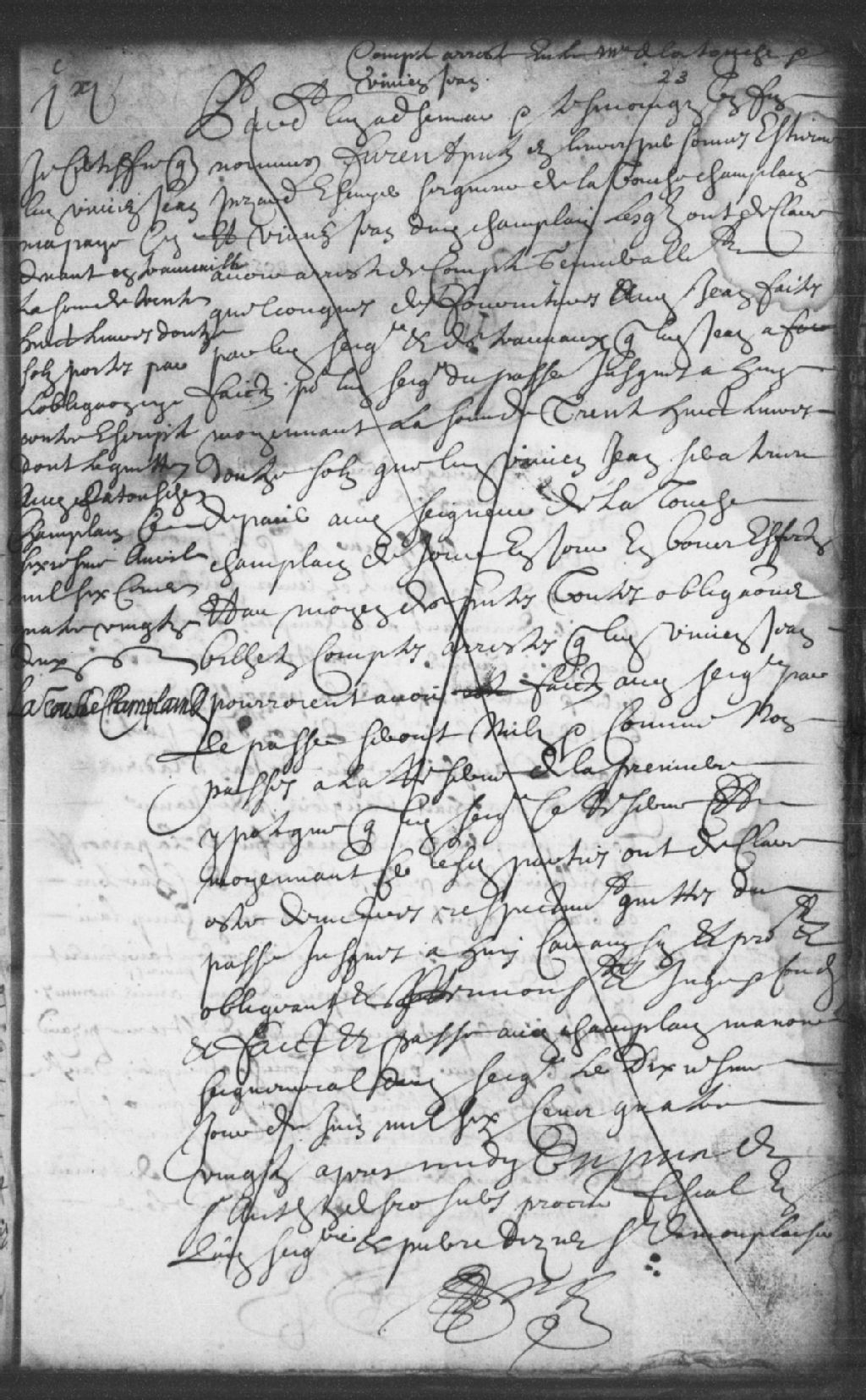 Arrêté de compte entre monsieur Étienne Pézard (Pesard), écuyer, seigneur de la Tousche (Latouche) Champlain, et Vivien Jean de Champlain de la somme de 38 livres et 12 sols, rendant ainsi toutes dettes ou sommes dues par le passé nulles, exception faite de la première hypothèque dudit Jean
