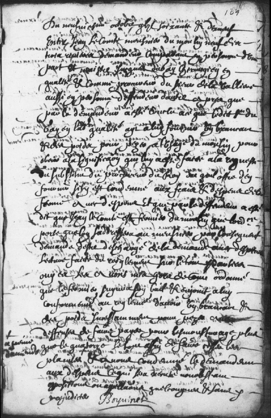 Requête de Jean Lecomte (Lecompte), menuisier du moulin neuf des Trois-Rivières, demandeur, contre maître Jacques Dugay (Duguay), chirurgien, procureur du sieur de la Vallière (LaVallière), défendeur..., 9 octobre 1679, Archives nationales à Trois-Rivières, Fonds Juridiction royale des Trois-Rivières, (04T,TL3,S11,P2087).