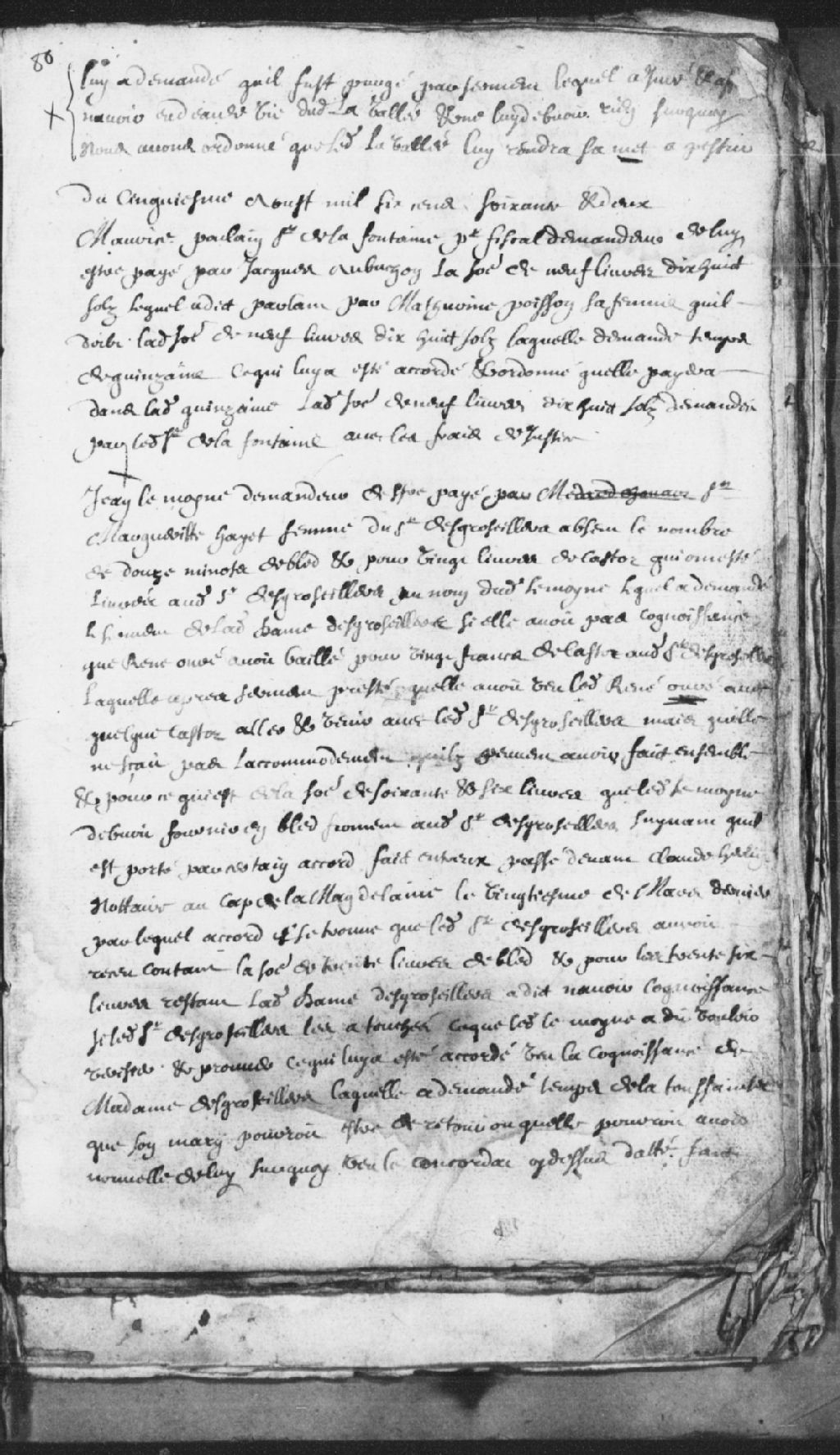 Lui demandant qu'il fut purgé par serment, lequel a juré et affirmé n'avoir eu d'eau-de-vie dudit la Vallée (Lavallée) et ne lui devait rien. Ordonné que ledit la Vallée lui rendra sa huche à pétrir