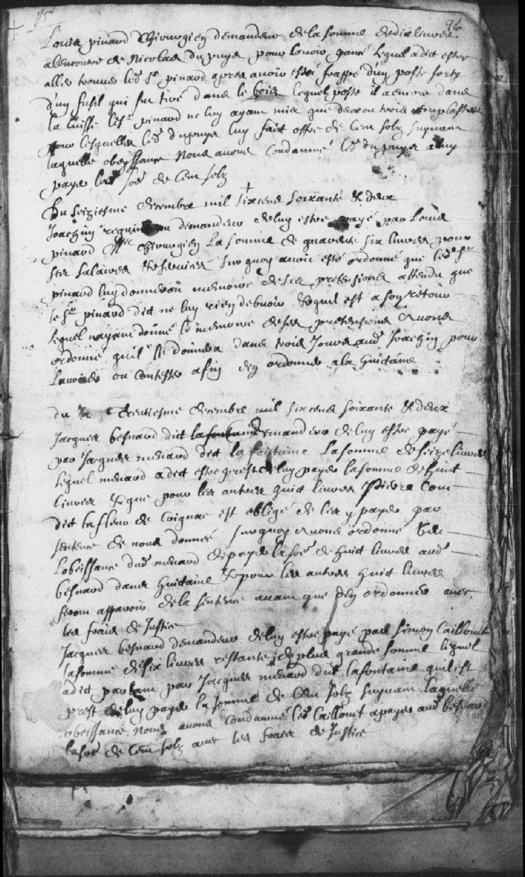 Requête de Joachim Reguindeau contre Louis Pinard, maître chirurgien, pour la somme de 46 livres pour ses salaires et services. Pinard devait donner un mémoire de ses prétentions mais ne l'a pas fait. Ordonné de donner le mémoire dans 3 jours pour ordonner dans huitaine