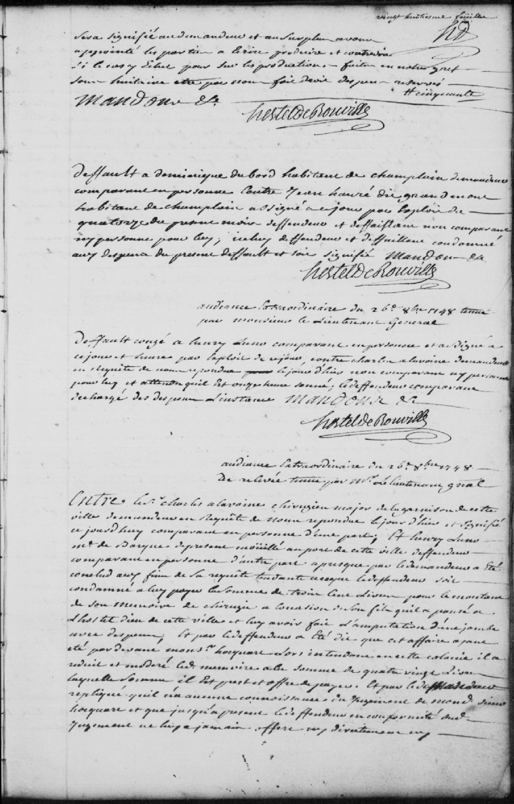 Requête du sieur Charles Alavoine, chirurgien-major de la garnison de Trois-Rivières, demandeur, contre Henri Luno (Luneau, Louineau), maître de barque présentement mouillée au port de Trois-Rivières, défendeur..., 26 octobre 1748, Archives nationales à Trois-Rivières, Fonds Juridiction royale des Trois-Rivières, (04T,TL3,S11,P3872).
