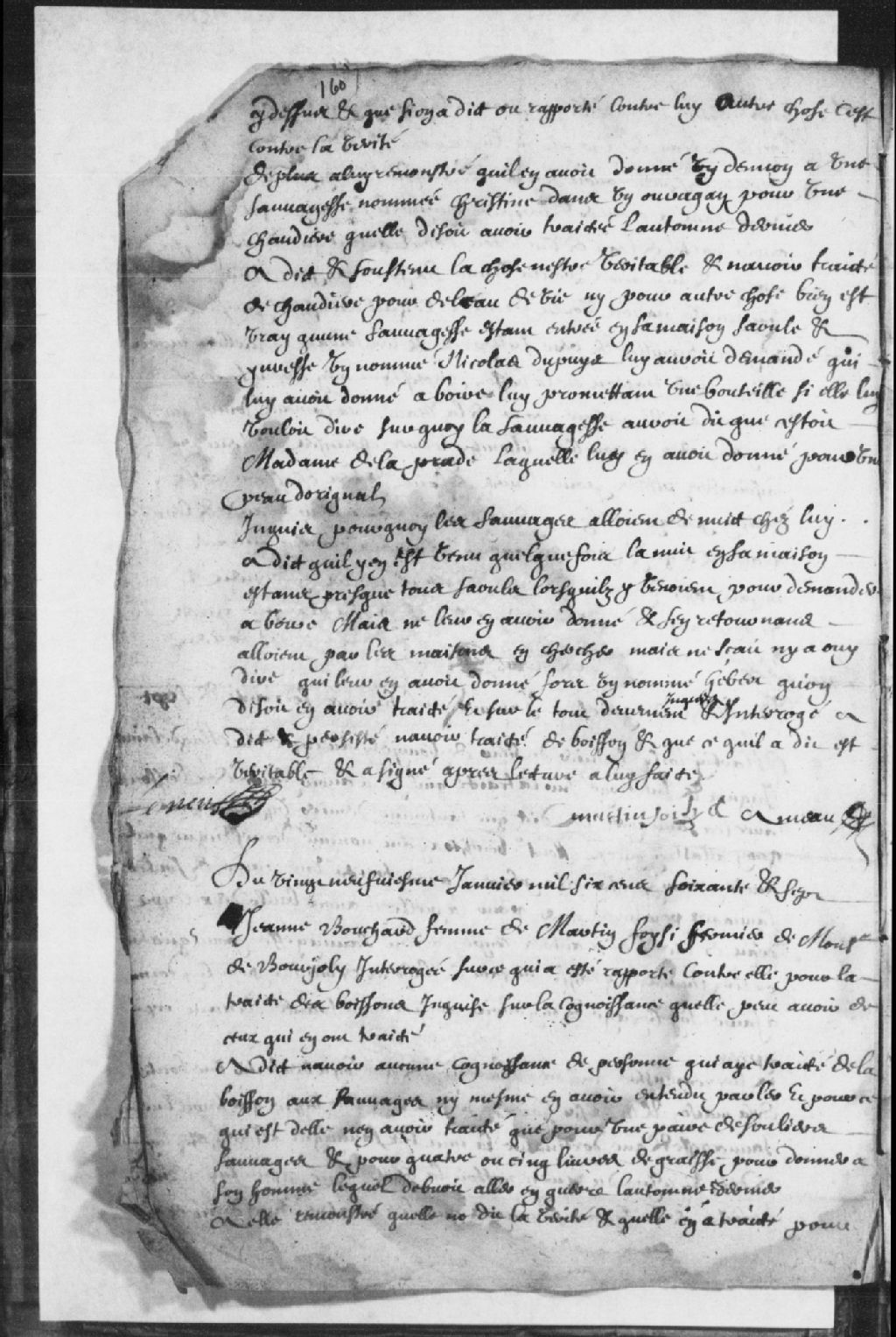 - Déclaration de Jeanne Bouchard, femme de Martin Foisy, fermier de monsieur de Bourjoly, au sujet de ce qui a été rapporté contre elle en ce qui concerne la traite de boissons avec les sauvages (Amérindiens)...