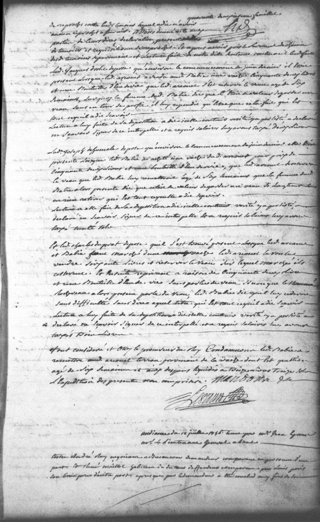 - Le titre complet de la pièce se lit comme suit : Requête d¿André Ray (Rey), négociant à Bécancour, demandeur, contre René Maillot, habitant de Dutort, défendeur comparant par Louis Paris, son beau-père, pour que le défendeur soit condamné à fournir au demandeur une vache de 55 livres et à lui payer 55 livres et 1 sol, et 5 livres selon un acte passé entre les parties par-devant maître Pillard le 26 avril 1756 et aux intérêts; le comparant du défendeur répond que son gendre est détaché pour le Roi et que sa femme n¿a pas les moyens de payer, mais qu¿elle peut livrer une vache pour 70 livres; le défendeur est condamné à livrer au demandeur la vache en question, à lui payer le restant mentionné dans l¿acte et aux dépens liquidés à 6 livres et 10 sols.