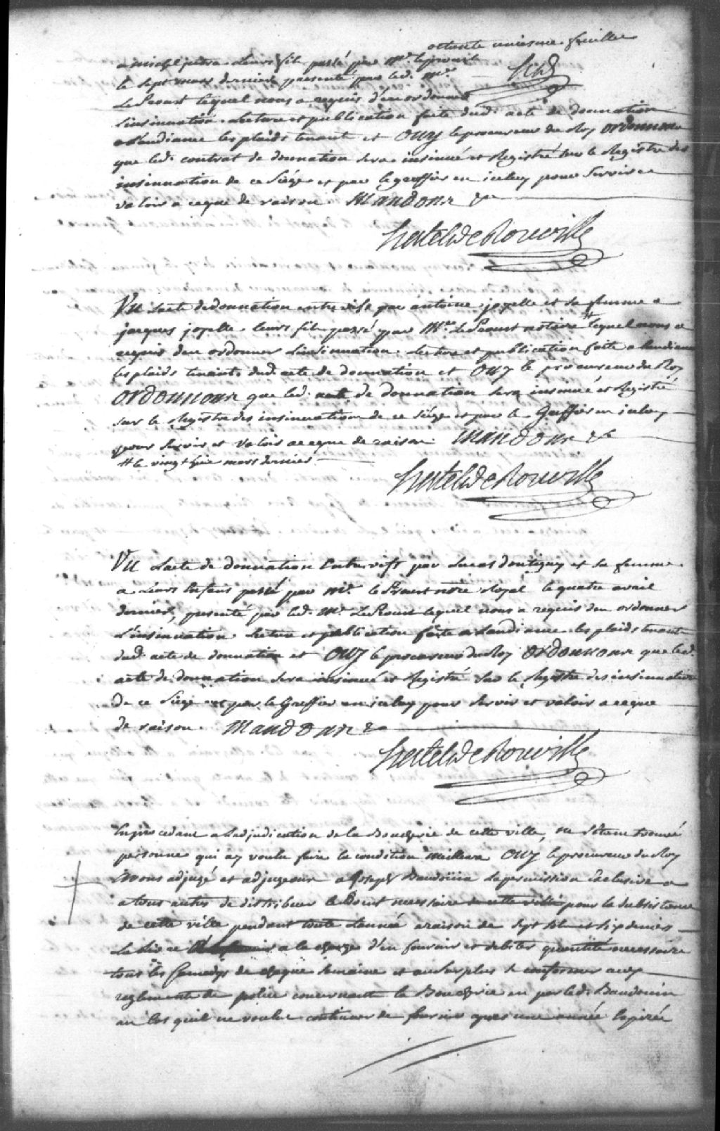 - Adjudication de la boucherie de Trois-Rivières à Joseph Baudouin (Beaudoin) avec la permission exclusive de distribuer au public le boeuf nécessaire pour la subsistance de Trois-Rivières...