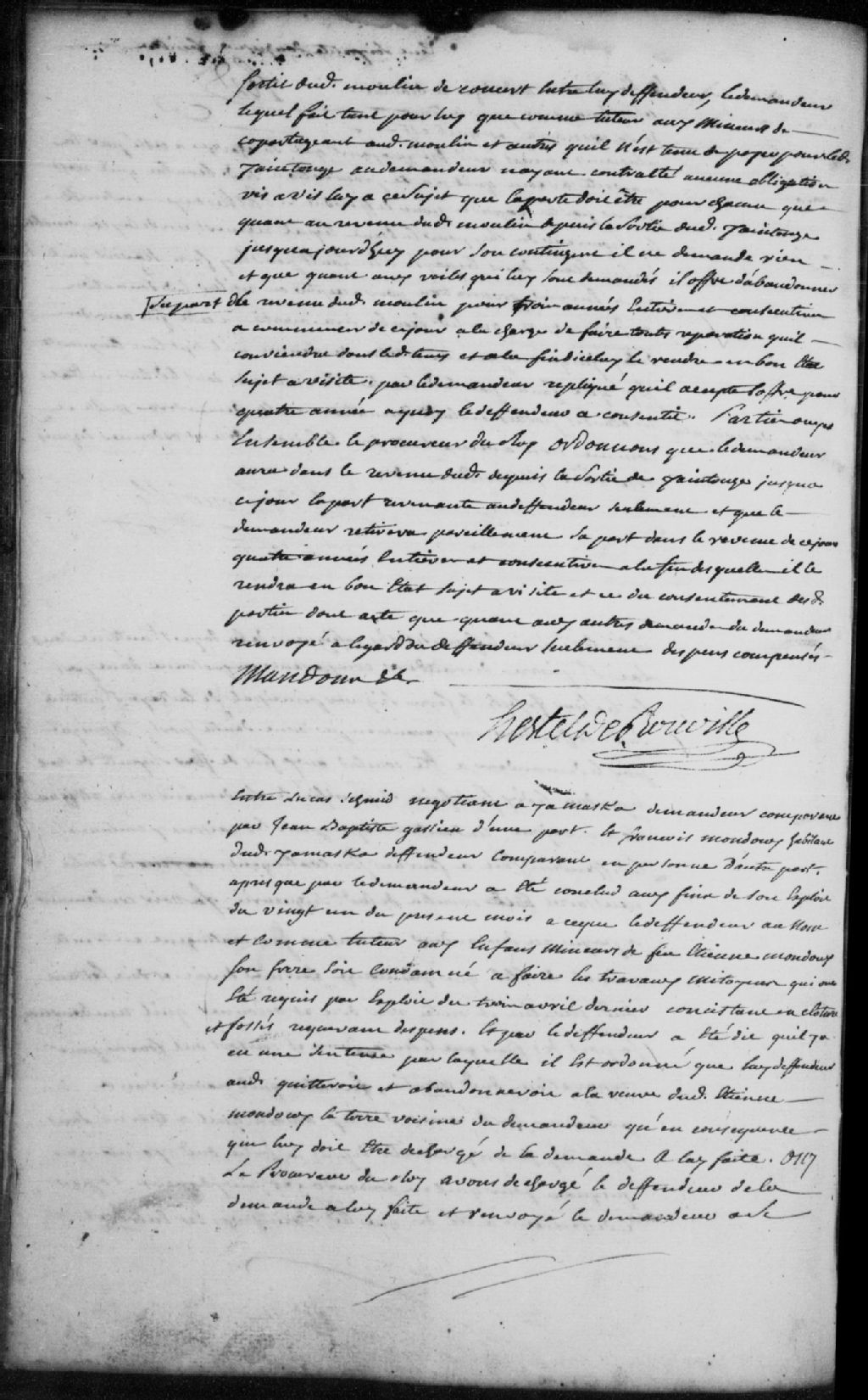 - Le titre complet de la pièce se lit comme suit : Requête de Lucas Schmid, négociant à Yamaska, demandeur comparant par Jean-Baptiste Gassien (Gatien), contre François Mondoux (Maudou, Maudoux, Mondou), habitant d¿Yamaska et en tant que tuteur des enfants mineurs de feu Étienne Mondoux, son frère, défendeur, pour que ce dernier soit condamné à faire les travaux mitoyens qui ont été requis par exploit du 3 avril 1755 de faire une clôture et des fossés; le défendeur répond qu¿une sentence lui ordonne de quitter et abandonner à la veuve dudit Étienne Mondoux la terre voisine du demandeur; la Cour décharge le défendeur de la demande et renvoie le demandeur à se pourvoir comme il voudra.