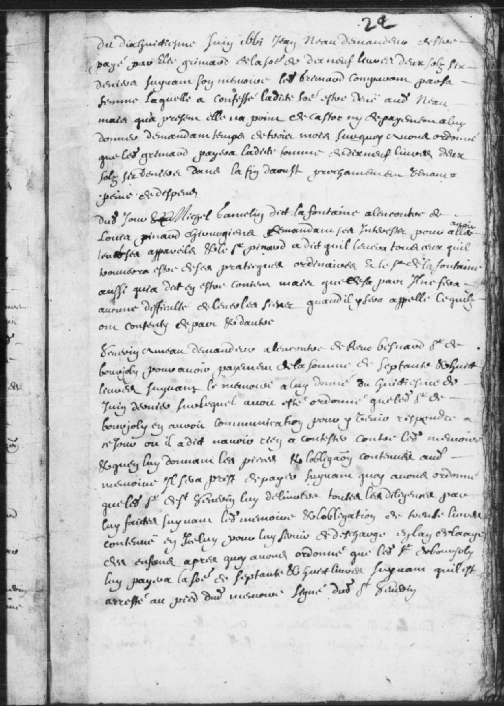 Comparution de Michel Gamelin dit Lafontaine, à l'encontre de Louis Pinard, chirurgien, demandant ses intérêts pour avoir allé tout ses appareils et le sieur Pinard a dit qu'il livrera tout ceux qu'il trouvera être de ses pratiques ordinaires et le sieur de Lafontaine aussi, qui a dit en être content mais que de sa part il ne fera aucune difficulté de livrer les siens quand il en sera appelé; ce qu'ils ont consenti de part et d'autre