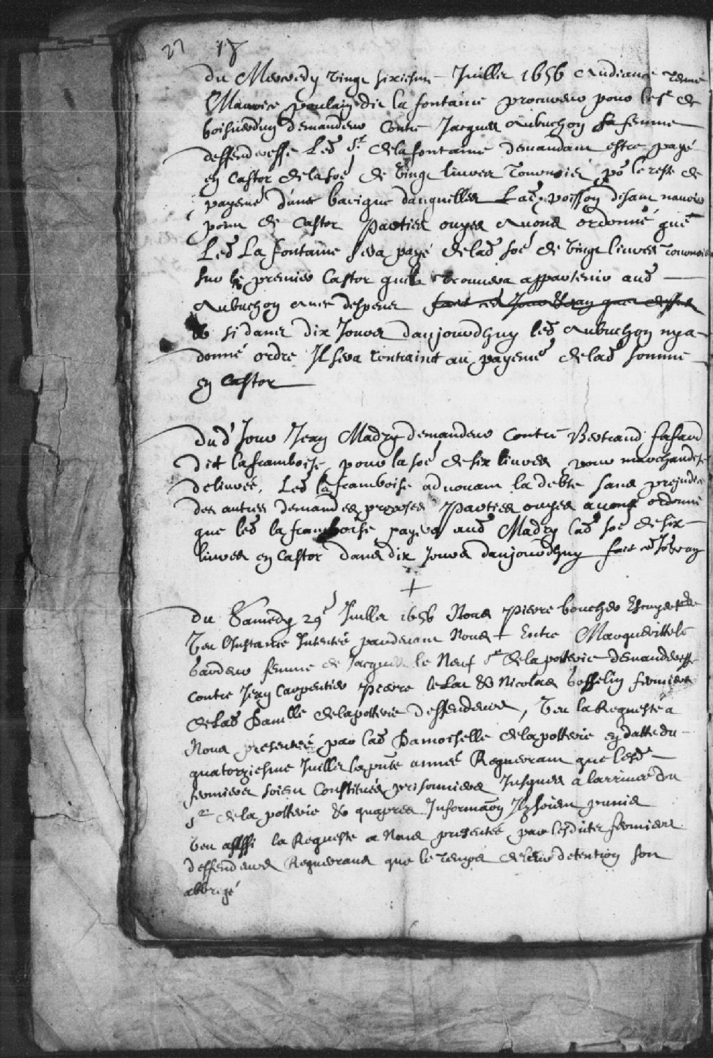 Requête de Jean Madry, demandeur, contre Bertrand Fafard dit la framboise (Laframboise), pour la somme de six livres pour de la marchandise délivrée. Ordonné de payer audit Madry la somme de 6 livres en castor d'ici 10 jours
