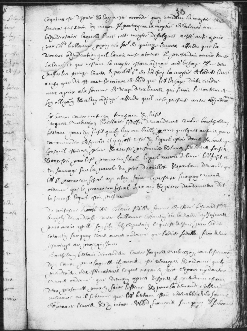 Requête de Jacques Aubuchon et Marie Sedillot (Sédilot), sa femme, demandeurs, contre Barthélémy Bertaut (Bertault), pour un fusil qu'ils lui ont baillé à raccommoder; lequel est resté dans sa boutique lorsqu'il fut fait prisonnier et tous ses biens saisis par le procureur fiscal, qui aurait donné le fusil à un Sauvage (Amérindien) sur l'avis du père Drouillet; ordonné de faire comparaître le procureur fiscal et Pierre Dandonneau dit la Jeunessse (Lajeunesse) qui était présent