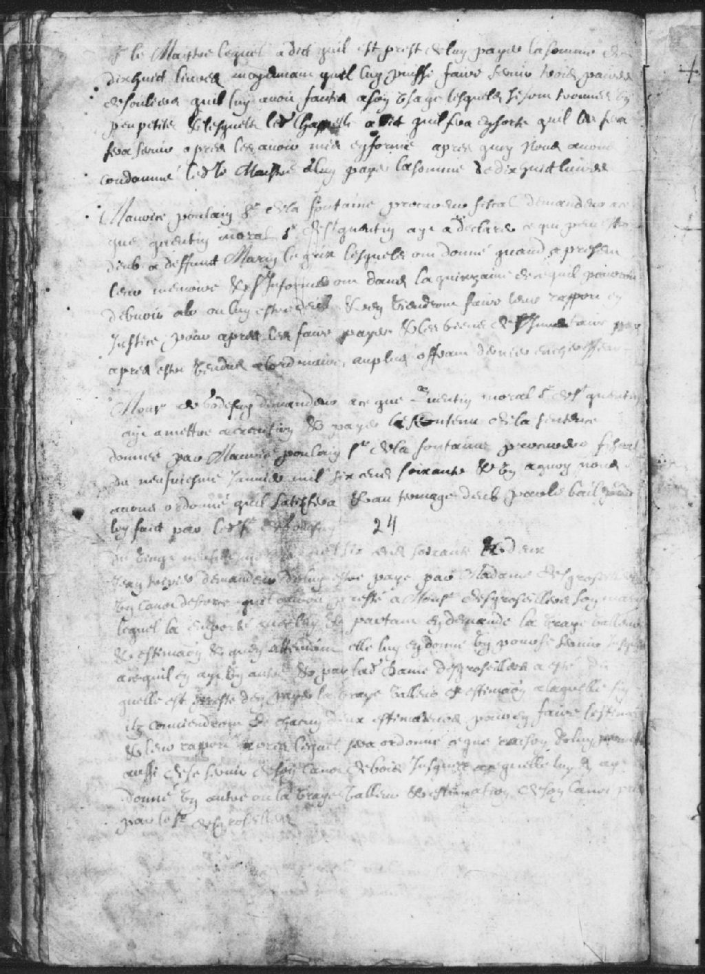 Requête de monsieur de Godefroy, demandeur, contre Quentin Moral, sieur de Saint-Quentin, pour obliger ledit Moral à payer le contenu de la sentence rendue contre lui par Maurice Poulain (Poulin), sieur de la Fontaine (Lafontaine), procureur fiscal, le 9 janvier 1661, relativement au fermage qu'il doit audit Godefroy
