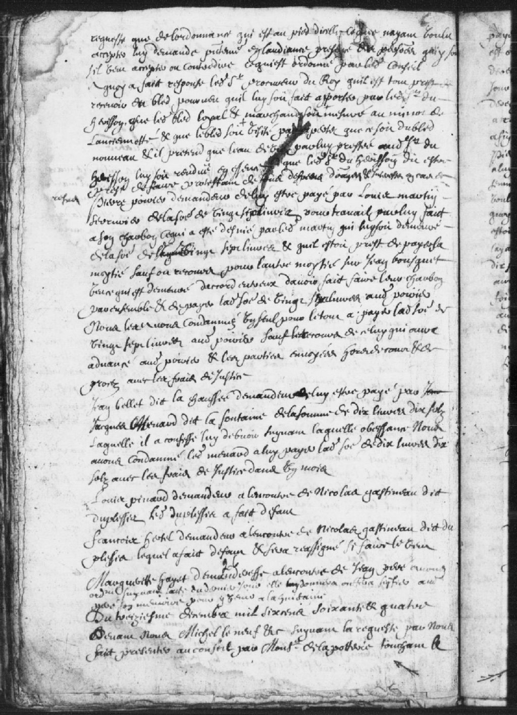 Requête de Louis Pinard, demandeur, à l'encontre de Nicolas Gastineau (Gatineau) dit du Plessis (Duplessis); lequel a fait défaut, 6 décembre 1664, Archives nationales à Trois-Rivières, Fonds Juridiction royale des Trois-Rivières, (04T,TL3,S11,P897).
