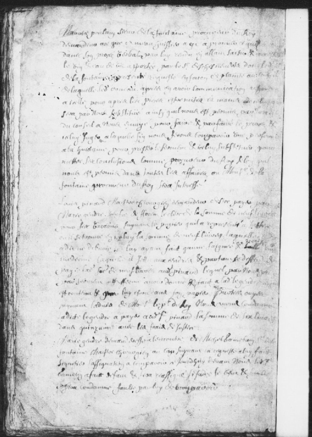 Requête de Louis Pinard, maître chirurgien, demandeur, d'être payé par Marie Gendre, femme de Florent le Clerc (Leclerc), de la somme de 9 livres pour ses vacations, suivant une ordonnance; ladite Gendre ne veut payer et se plaint de l'incompétence de Pinard; ordonné qu'elle paye 6 livres dans quinzaine avec les frais de justice