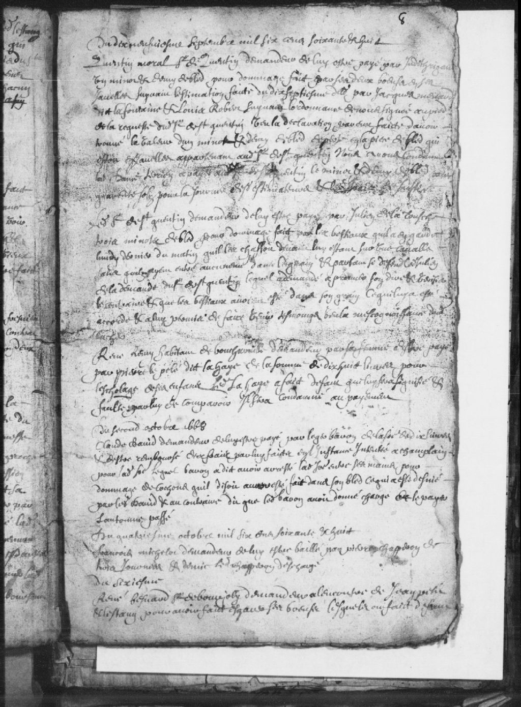 Requête de René Bénard (Besnard), sieur de Bourjoly, demandeur, à l'encontre de Jean Petit et Létang (Lestang) pour avoir fait égarer ses boeufs. Lesdits Petit et Létang (Lestang) ont fait défaut, 6 octobre 1668, Archives nationales à Trois-Rivières, Fonds Juridiction royale des Trois-Rivières, (04T,TL3,S11,P992).