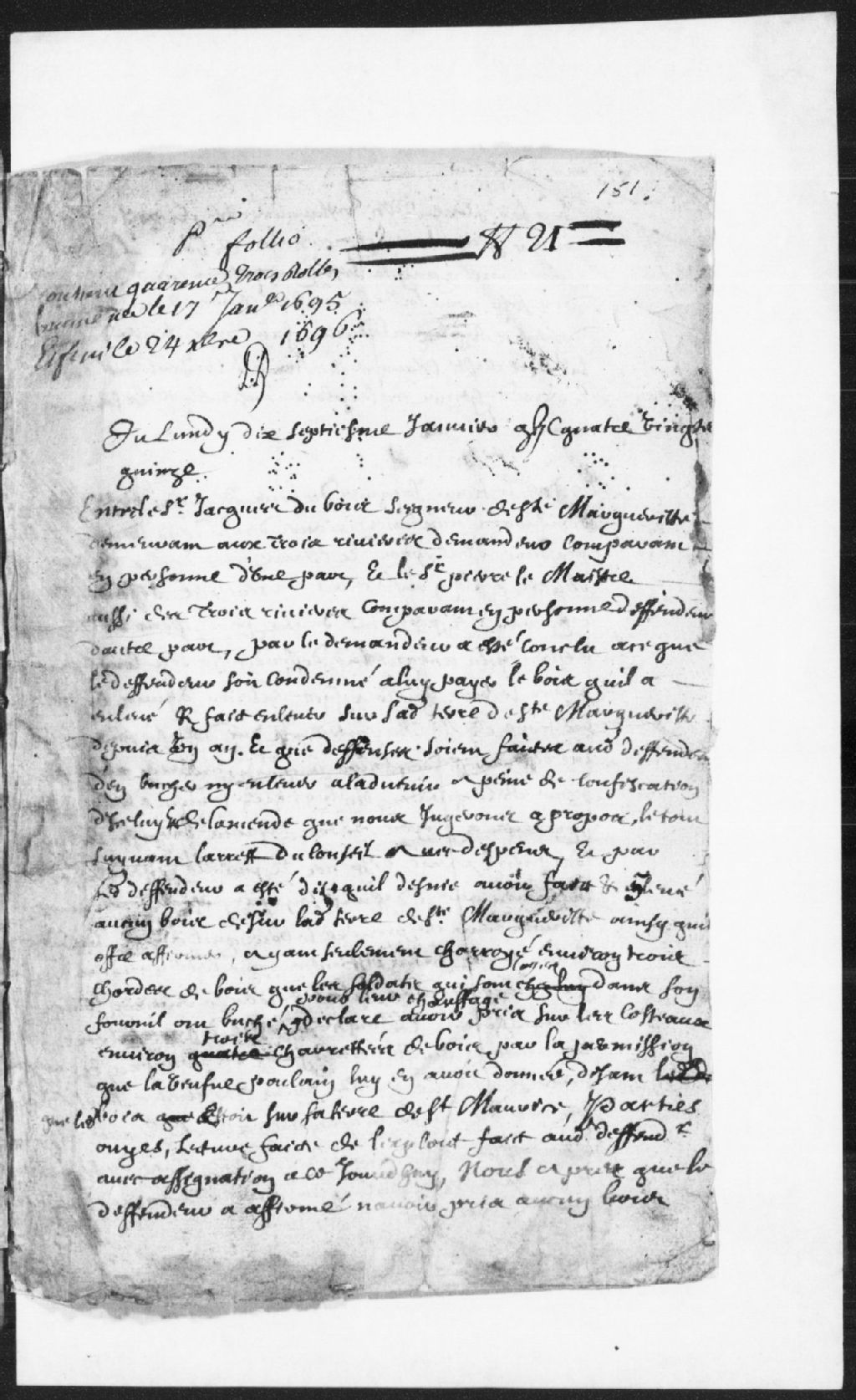 Information permettant la mise en contexte du registre numéro 6 des audiences de la Juridiction royale des Trois-Rivières du 18 décembre 1690 au 14 janvier 1701. Cette troisième mise en contexte couvre la période du 17 janvier 1695 au 24 décembre 1696, p.151 à 245