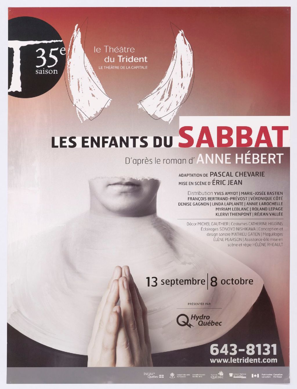 Les enfants du sabbat, d'après le roman d'Anne Hébert, adaptation de Pascal Chevarie, mise en scène d'Éric Jean
