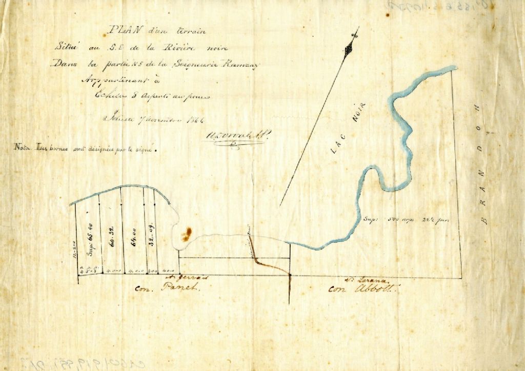 Plan d'un terrain Situé au S.E. de la Rivière noir Dans la partie N E de la Seigneurie Ramzay