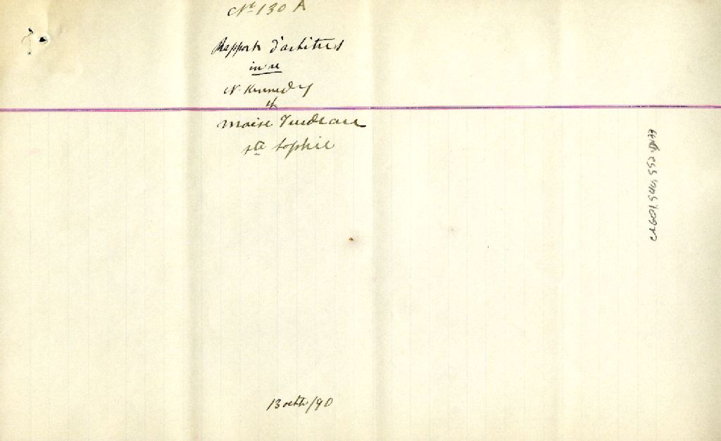 Rapport de C.S. Baker et J.H. Mathe, respectivement nommés par N. Kennedy et Moïse Trudeau comme arbitres, et J.H. Leclair, nommé par les dits C.S. Baker et J.H. Mathe, concernant la livraison par Moïse Trudeau à N. Kennedy d'une certaine quantité de pierre non déterminée à l'avance pour la constructions d'ouvrages de maçonnerie à Sainte-Sophie, 13 octobre 1890, Archives nationales à Montréal, Fonds Cour supérieure. District judiciaire de Montréal. Greffes d'arpenteurs, (06M,CA601,S40,SS2,D133).