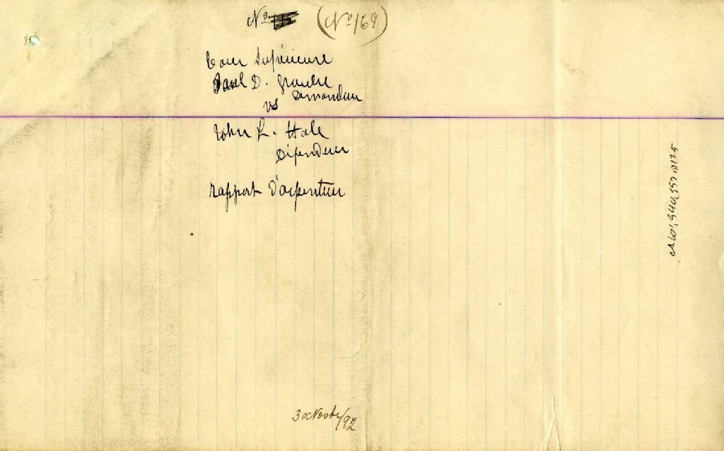 - Rapport d'arpentage et plans soumis à la Cour Supérieure du district de Montréal dans la cause opposant Paul Daniel Groulx à John L. Hale pour établir la ligne de division des lots portant les n° 17, 18 et 19 au village de New Glasgow