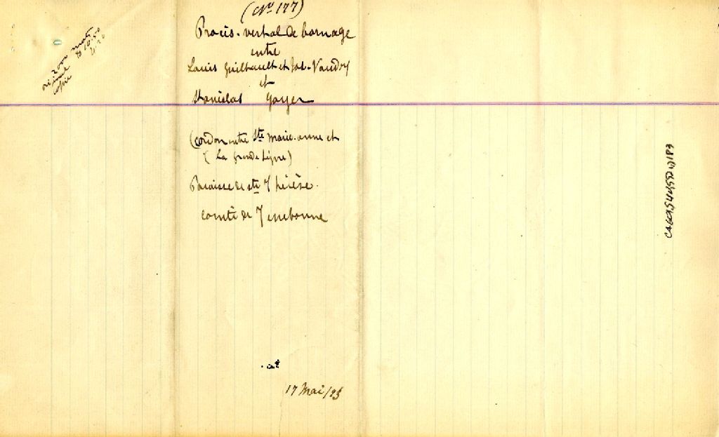 - Procès-verbal de bornage, à la requête de Louis Guilbault et Joseph Vaudry et à la suite du consentement de Stanislas Goyer, tous trois cultivateurs de la paroisse de Sainte-Thérèse, pour établir le cordon de séparation de leurs terrains situés entre les côtes Sainte-Marie-Anne et la Grande Ligne dans la dite paroisse