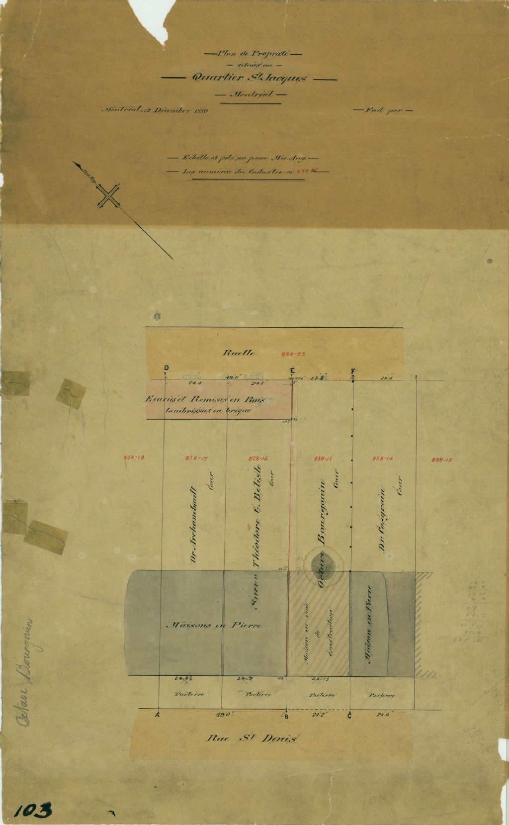 Plan de propriété située au quartier St-Jacques Montréal