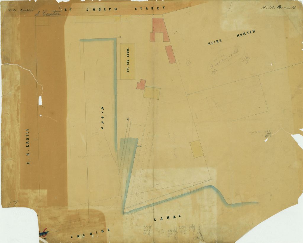 Ce plan présente le lot n° 1081 du cadastre du quartier Saint-Antoine de la cité de Montréal. Ce lot appartient à A. Cantin. Un édifice nommé The Red Store est localisé sur le lot ainsi que d'autre édifices. Les voisins sont C. H. Castle et les héritiers Hunter. Les mesures du lot sont indiquées