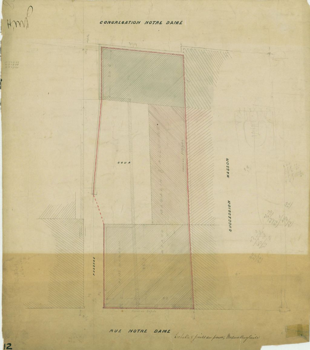 Plan d'un terrain situé sur la rue Notre-Dame à Montréal