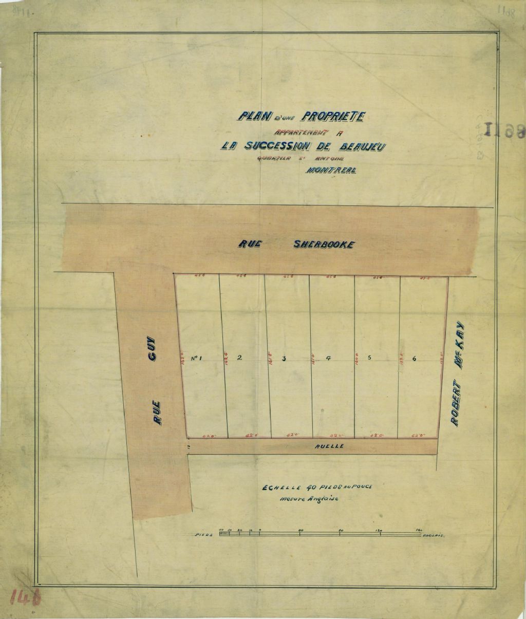 Plan d'une propriété appartenant à la succession de Beaujeu quartier St Antoine Montreal