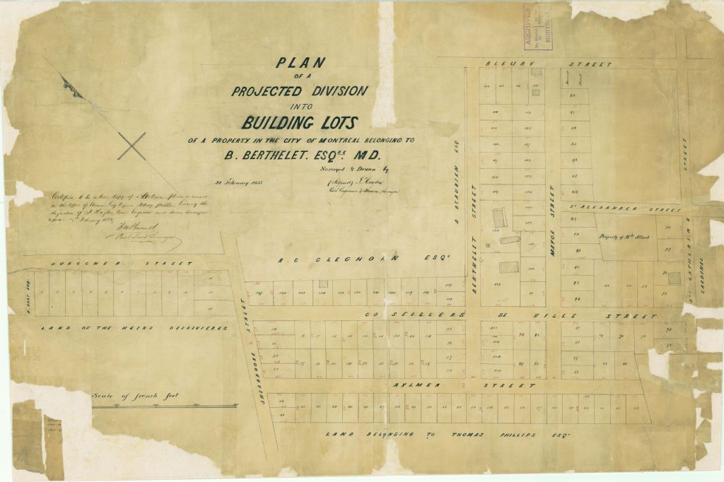 Plan of a Projected Division into Building Lots of a Property in the City of Montreal Belonging to B. Berthelet. Esqre. MD