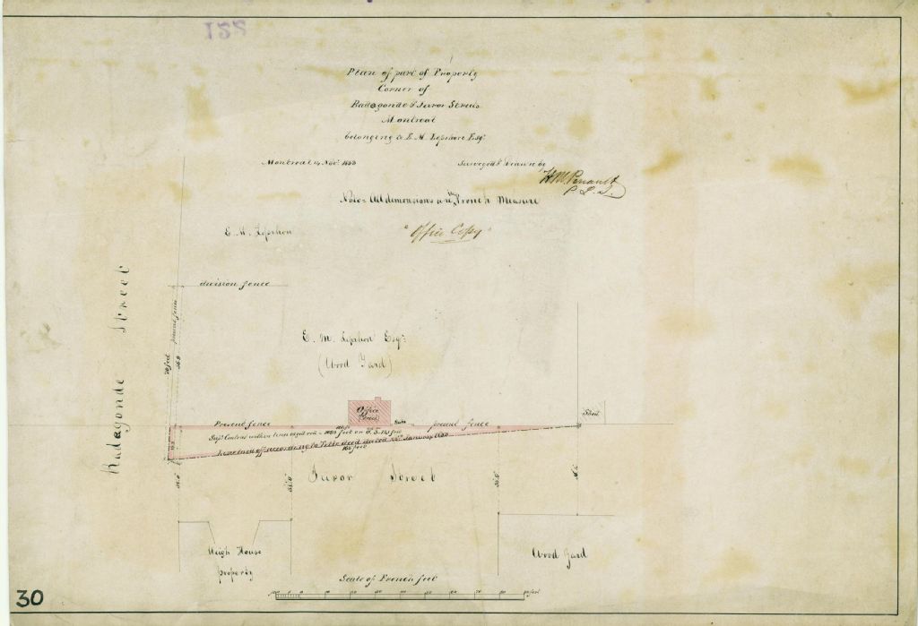 Plan of Part of Property Corner of Radegonde & Juror Streets Montreal Belonging to E. M. Leprohon Esqr