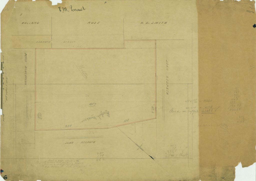 Ce plan présente les propriétés appartenant à L. H. Holton. Ces propriétés sont vendues à John Redpath. Elles sont situées sur la rue Redpath. Il s'agit des lots n° 1756 et 1757 du cadastre du quartier Saint-Antoine de la cité de Montréal.Outre John Redpath qui possède déjà les lots autour de la propriété, les voisins sont Monsieur Holland, Monsieur Rose, H. B. Smith et Peter Robertson. Les mesures de la propriété sont indiquées