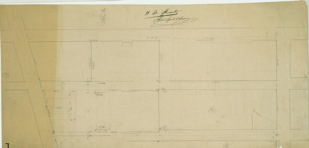 Ce plan présente la propriété appartenant à l'honorable Louis Guy. Elle est située entre les rues des Seigneurs, Notre-Dame, Saint-Pierre (devenue Saint-Martin) et Saint-Antoine à Montréal. Il s'agit des lots n° 299 à 369 du cadastre du quartier Saint-Antoine de la cité de Montréal.La propriété est divisée en quatre parties. Une de ces parties est subdivisée en lotissements. Les mesures des parties de la propriété et des lotissements sont indiquées