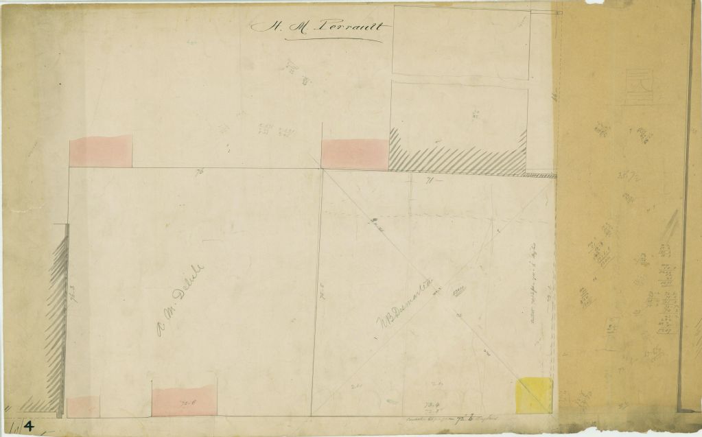 Plan de terrains appartenant à messieurs A. M. Delisle et N. B. Desmarteau