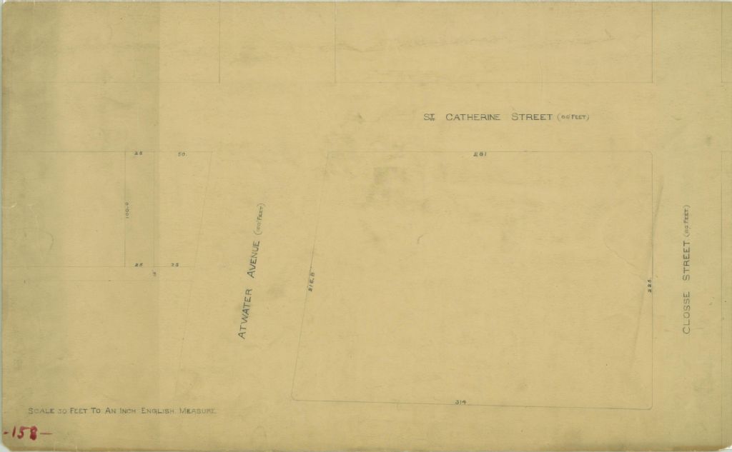 Plan d'une propriété sur la rue Sainte-Catherine entre les rues Atwater et Closse