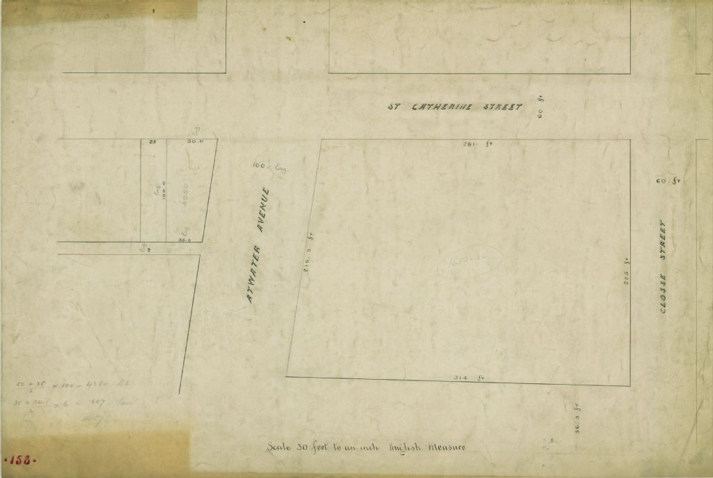 Plan d'une propriété située sur la rue Sainte-Catherine entre les rues Atwater et Closse à Montréal