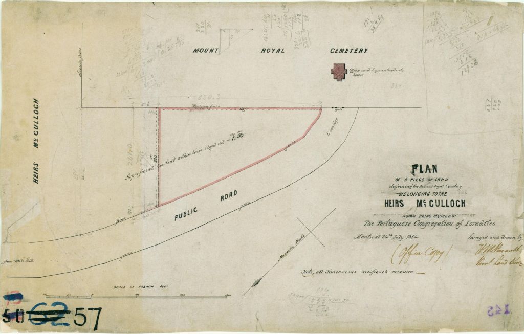 Plan of a Piece of Land Adjoining the Mount Royal Cemetery Belonging to the Heirs McCulloch about Being Acquired by the Portuguese Congregation of Israelites