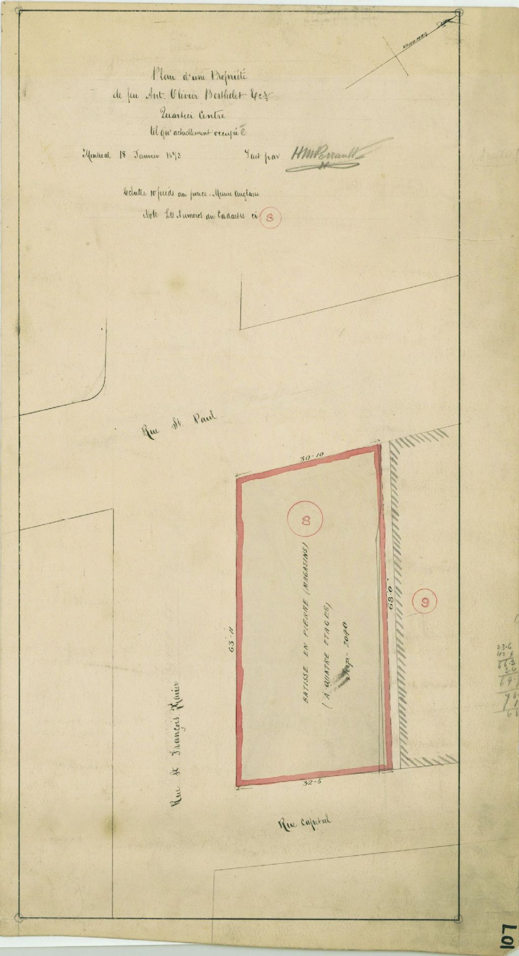 Plan d'une propriété de feu Ant. Olivier Berthelet Ecr. Quartier Centre tel qu'actuellement occupée
