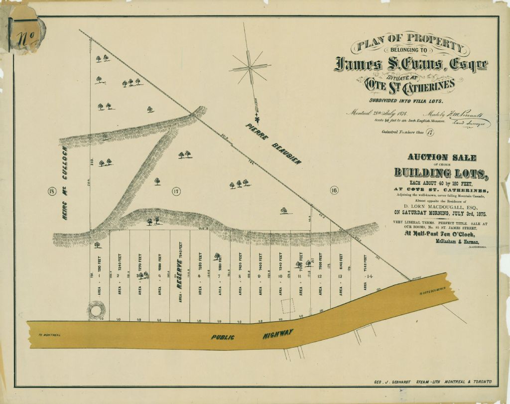 Plan of property belonging to James S. Evans Esqre. situate at Cote Ste. Catherine subdivided into villa lots