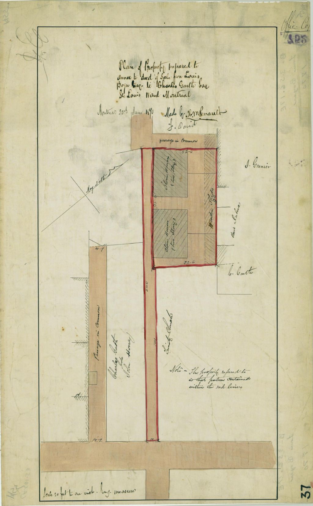 Plan of property prepared to annex to deed of sale from Louis Boyer Esq to Charles Garth Esq St. Louis Ward Montreal
