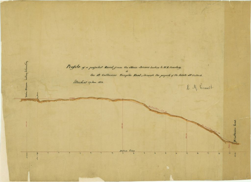 Profile of a Project Road from the Main Avenue Leading to Mount Royal Cemetery to the Ste. Catherine Turnpike Through the Property of the Estate Mc Culloch