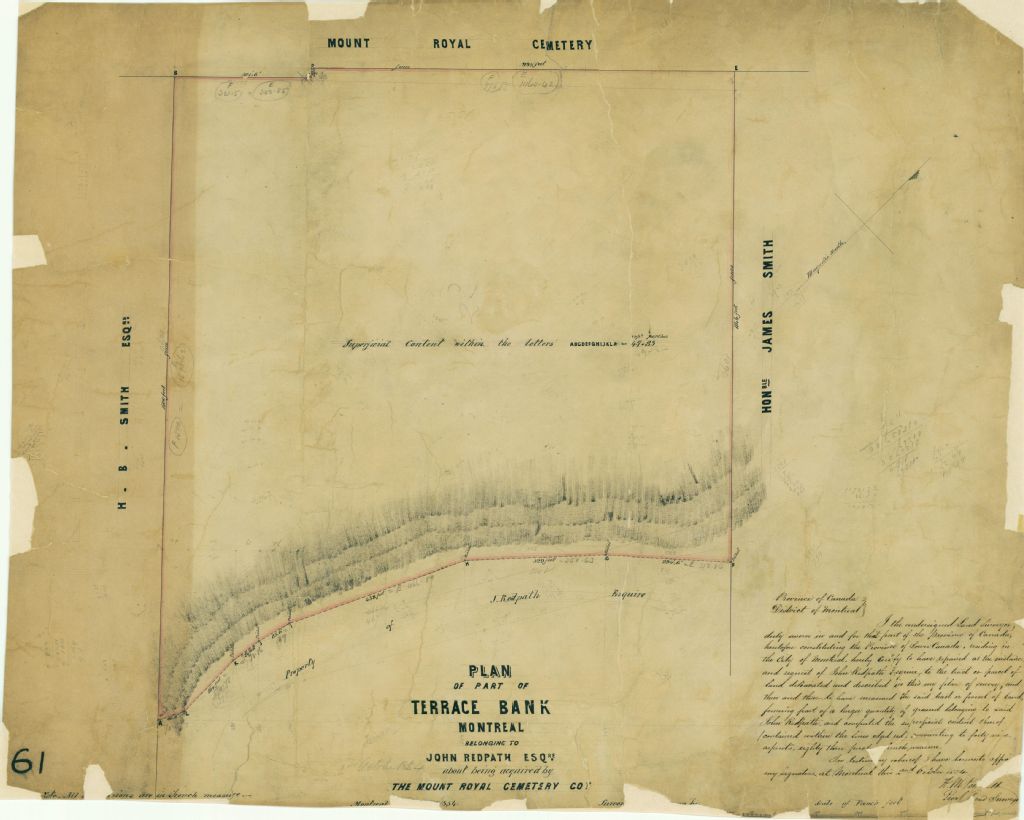 Plan of Part of Terrace Bank Montreal Belonging to John Redpath Esquire About Being Acquired by the Mount Royal Cemetery Company