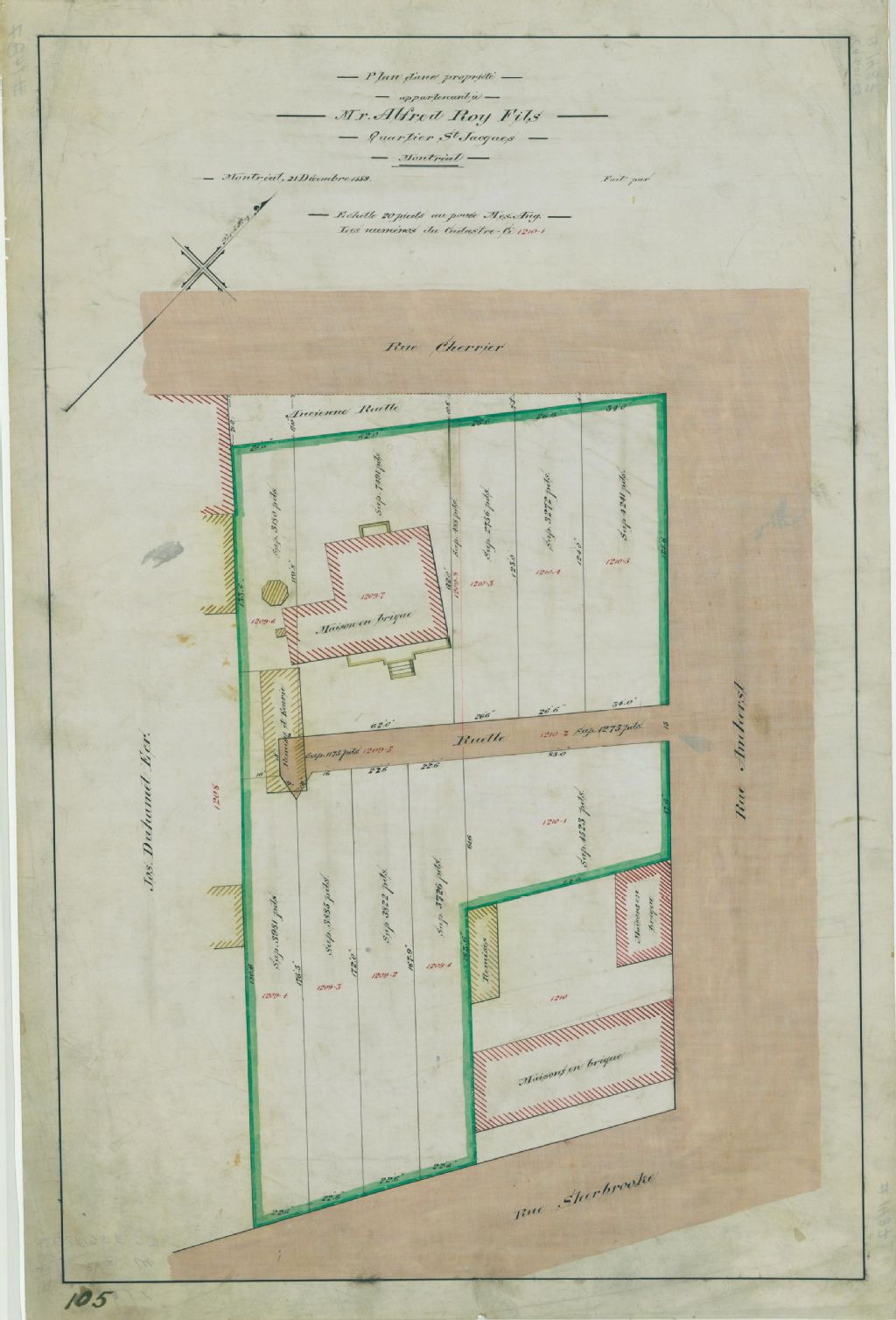 Plan d'une propriété appartenant à Mr. Alfred Roy fils Quartier St Jacques Montréal