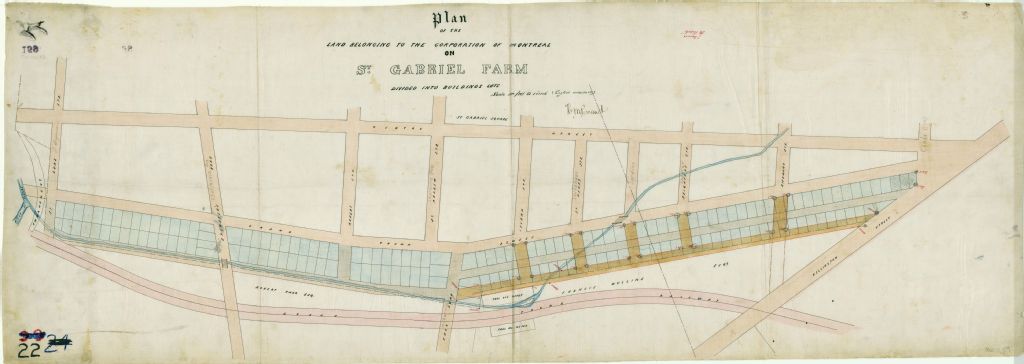 Plan of the Land Belonging to the Corporation of Montreal on St. Gabriel Farm Divided into Building Lots