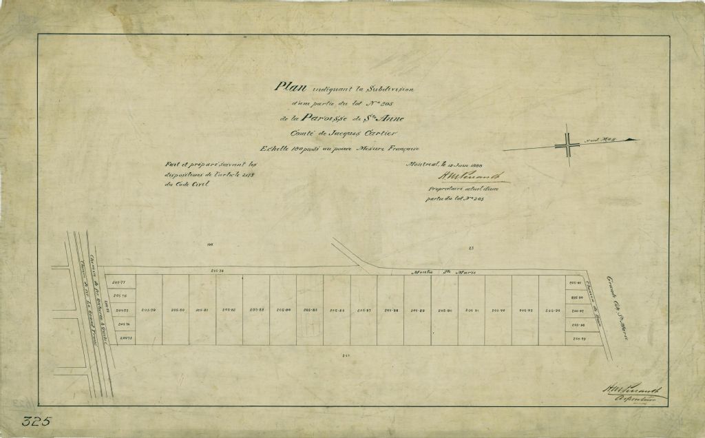 Plan indiquant la Subdivision d'une partie du lot No 205 de la Paroisse de Ste Anne Comté de Jacques Cartier