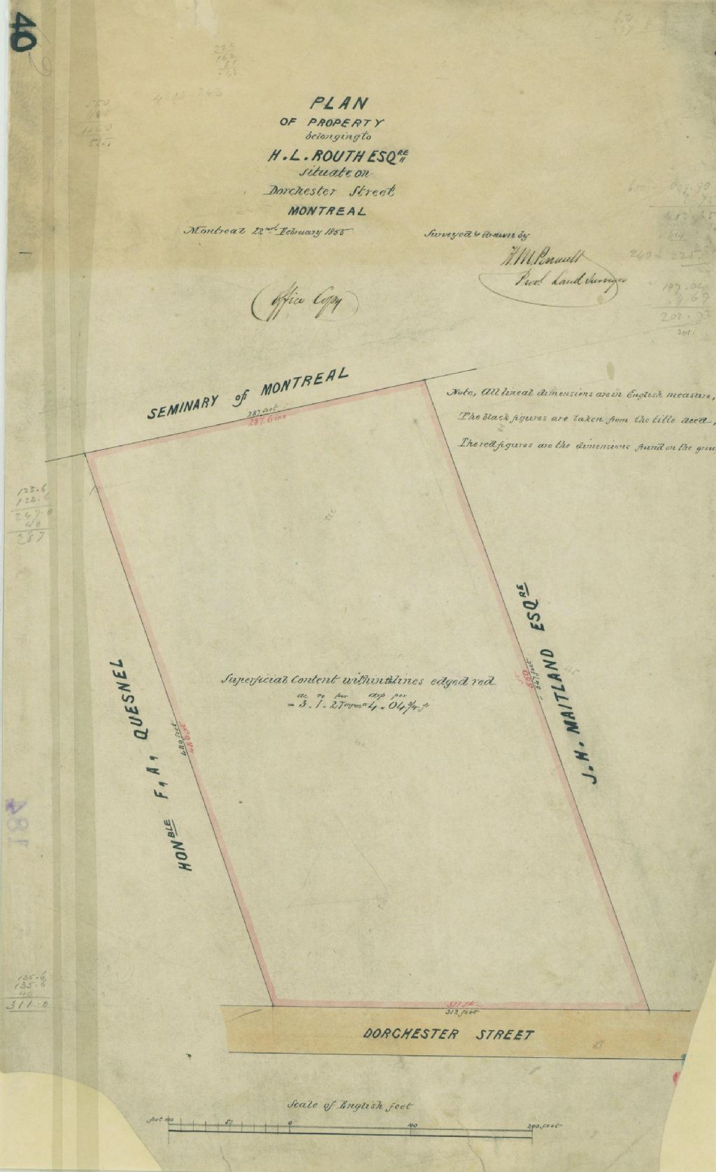 Plan of Property Belonging to H. L. Routh Esqre. Situate on Dorchester Street Montreal
