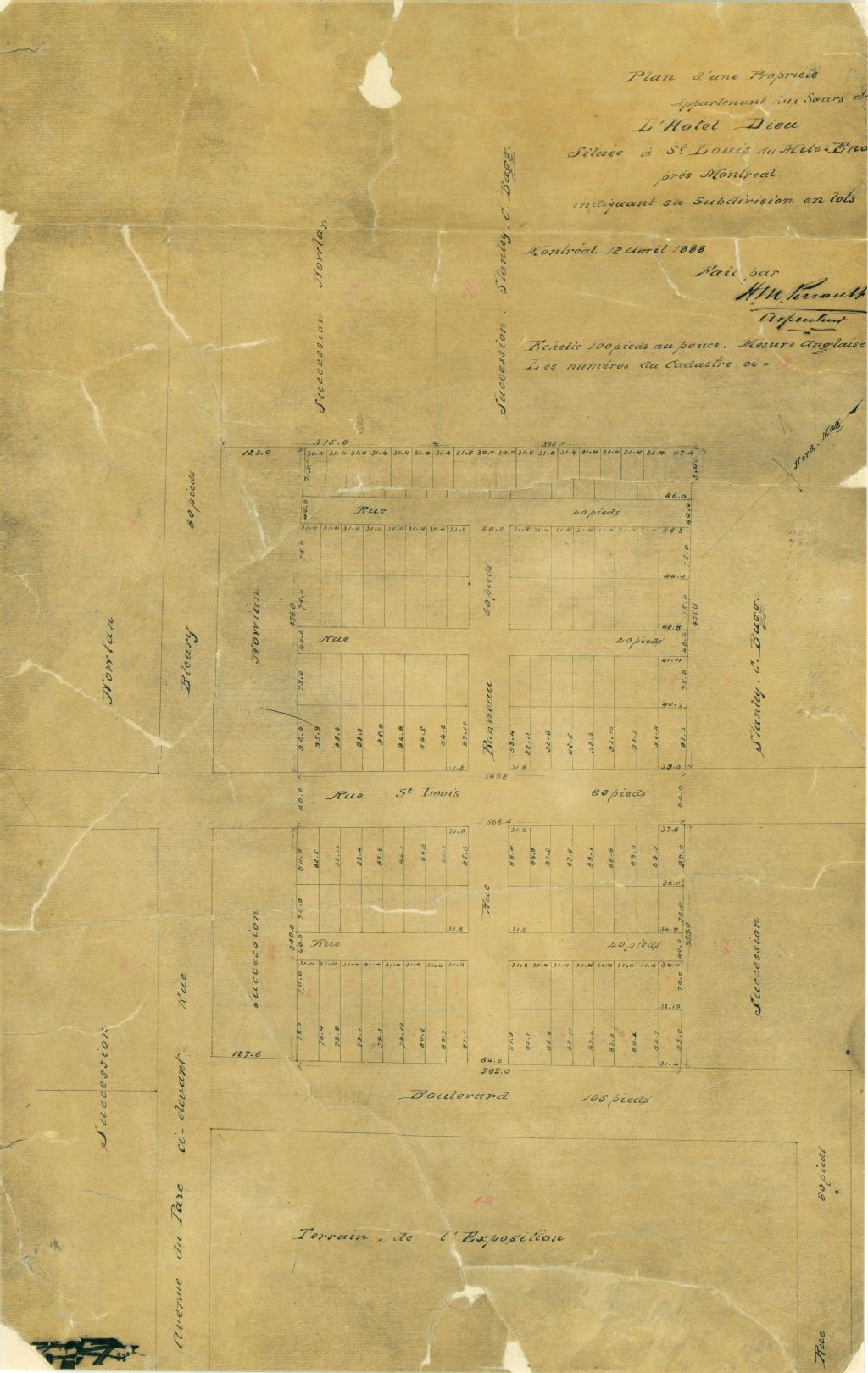 Plan d'une propriété appartenant aux Soeurs de l'Hôtel-Dieu située à St-Louis du Mile End près Montréal indiquant sa subdivision en lots